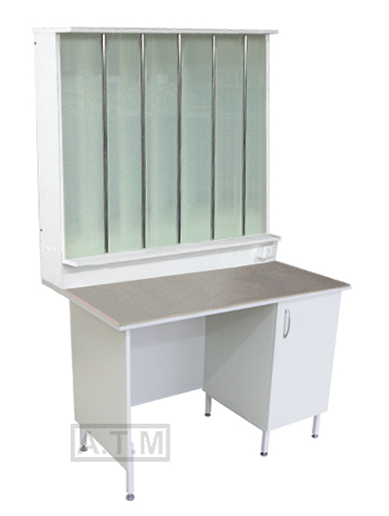 Стол снабжен розеткой, выключателем и тумбой со створкой;