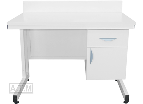 Стол оснащен тумбой с ящиком и распашной дверцей;
