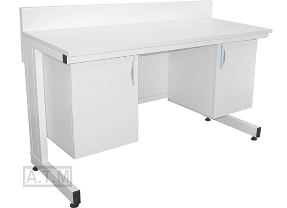 Стол оснащен 2 тумбами, каждая тумба имеет распашную дверцу;