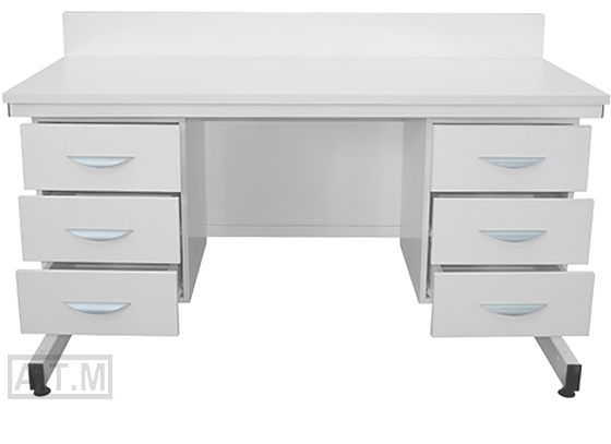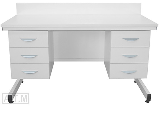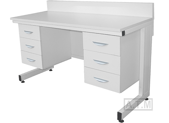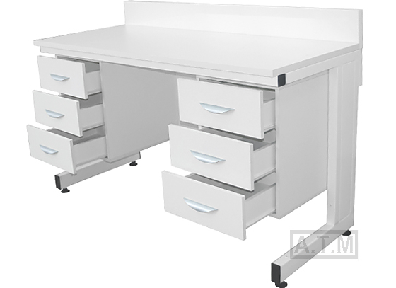 Стол оснащен 2 тумбами, каждая тумба имеет 3 ящика на роликовых направляющих;