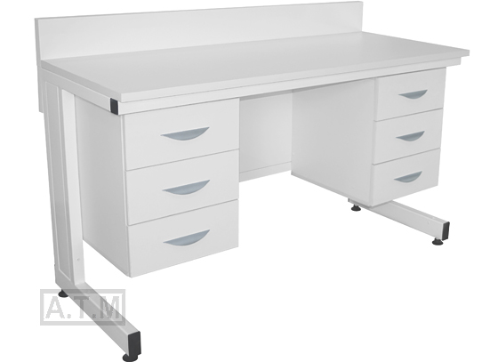 Стол оснащен 2 тумбами, каждая тумба имеет 3 ящика на роликовых направляющих;