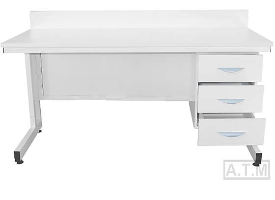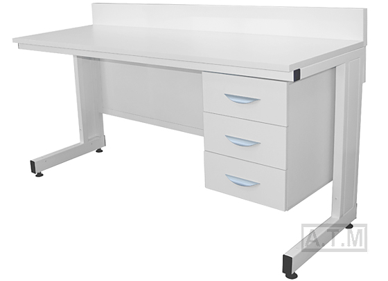 Стол оснащен тумбой с 3 ящиками на роликовых направляющих;
