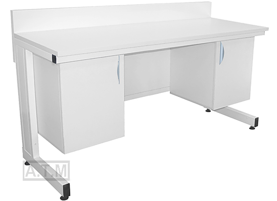 Стол оснащен 2 тумбами, каждая тумба имеет распашную дверцу;