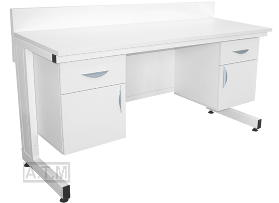 Стол оснащен 2 тумбами, каждая тумба имеет ящик и распашную дверцу;