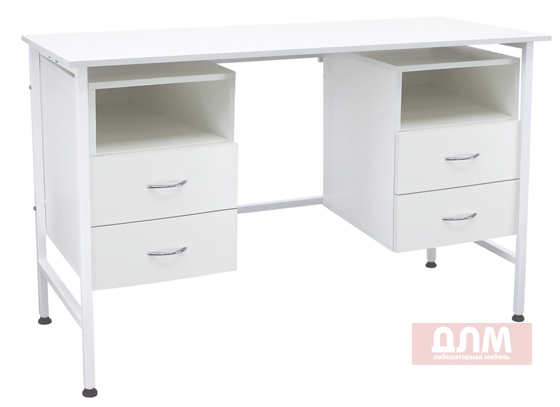 Стол снабжен 2-я подвесными тумбами с нишей и 2-я ящиками.