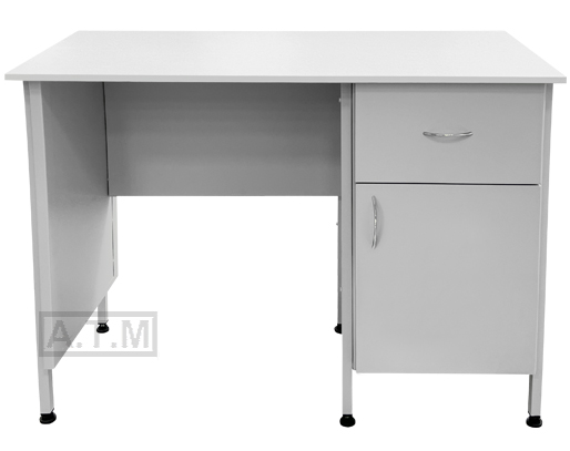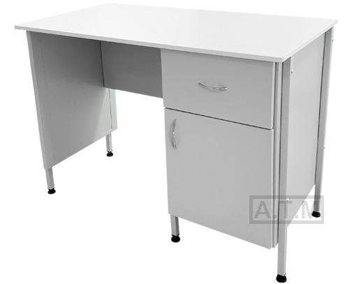 Стол оснащен тумбой с ящиком на шариковых направляющих и створкой;