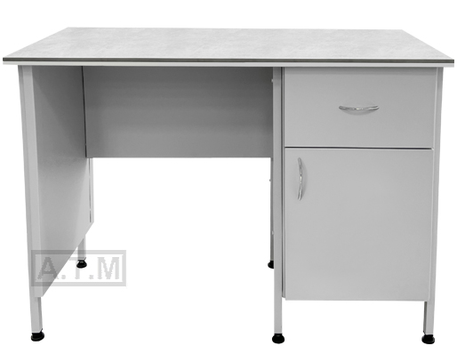 Стол оснащен тумбой с ящиком на шариковых направляющих и створкой;