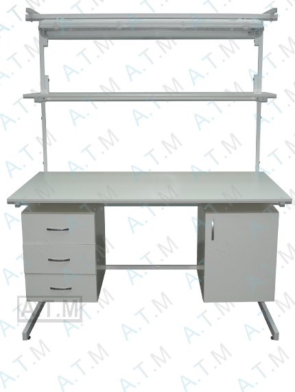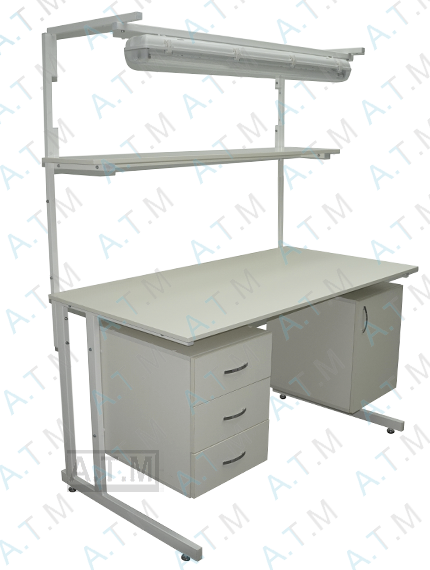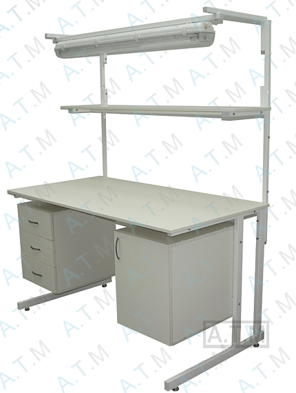 Стол снабжен надстройкой с одной полкой, светодиодным светильником, розеткой, автоматом отключения питания на 16А;