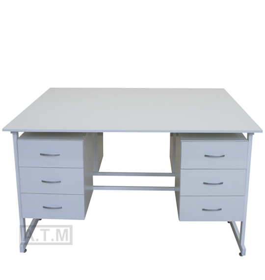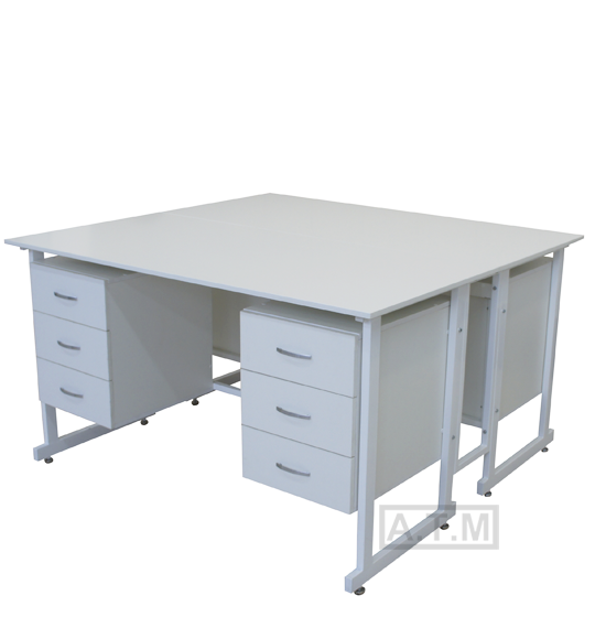 Стол оснащен 4 тумбами с 3 ящиками на роликовых направляющих;