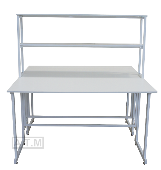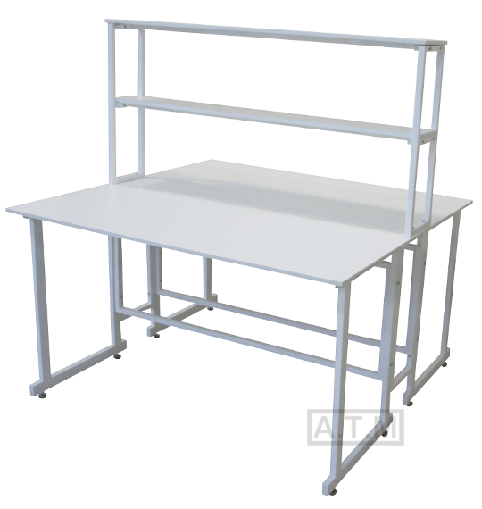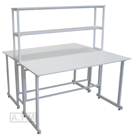 Стол снабжен надстройкой с двумя полками;