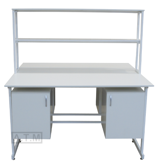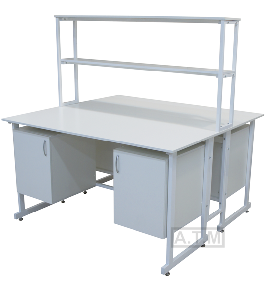 Стол снабжен надстройкой с двумя полками;