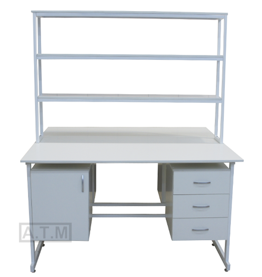 Стол снабжен надстройкой с 3 полками;