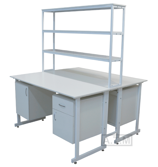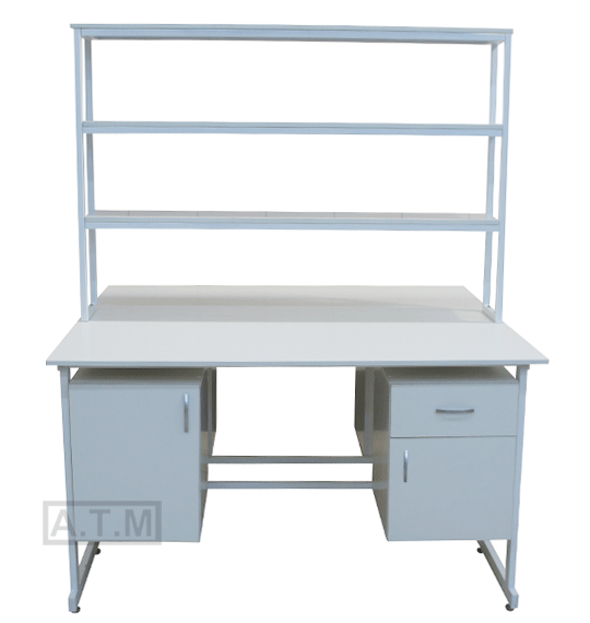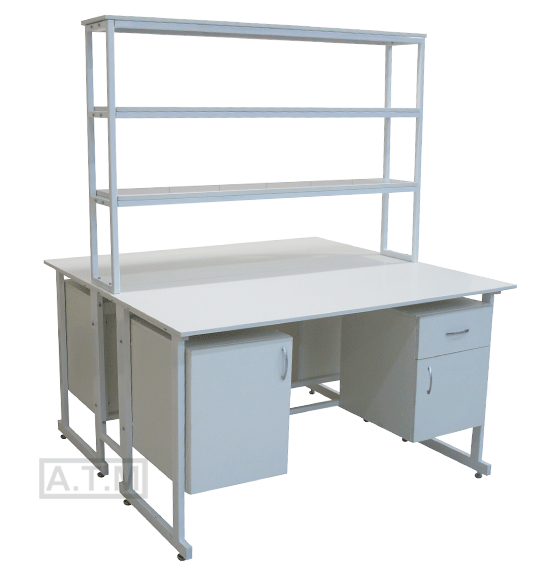 Стол снабжен надстройкой с 3 полками;