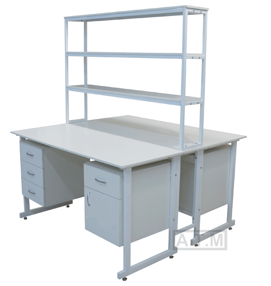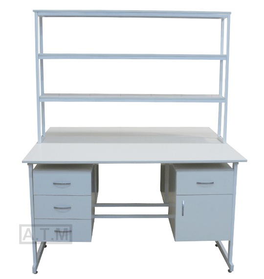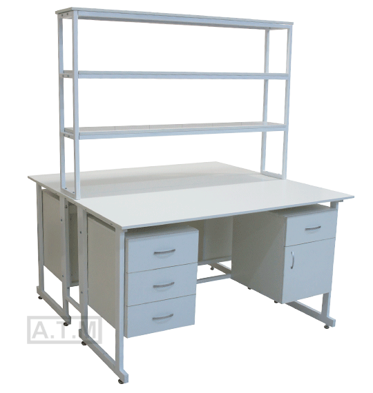Стол снабжен надстройкой с 3 полками;