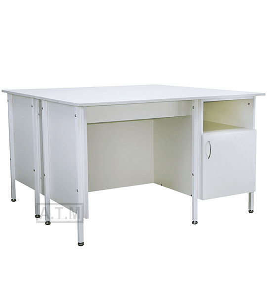 Стол оснащен тумбой с нишей и створкой;