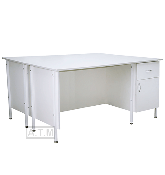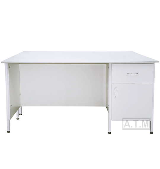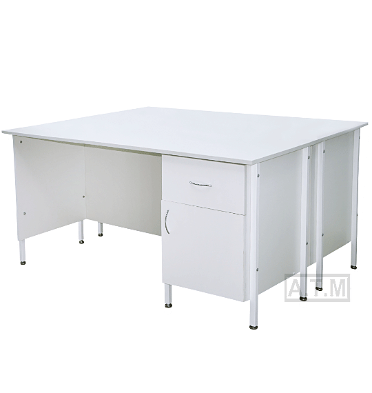 Стол оснащен тумбой с ящиком на роликовых направляющих и створкой;