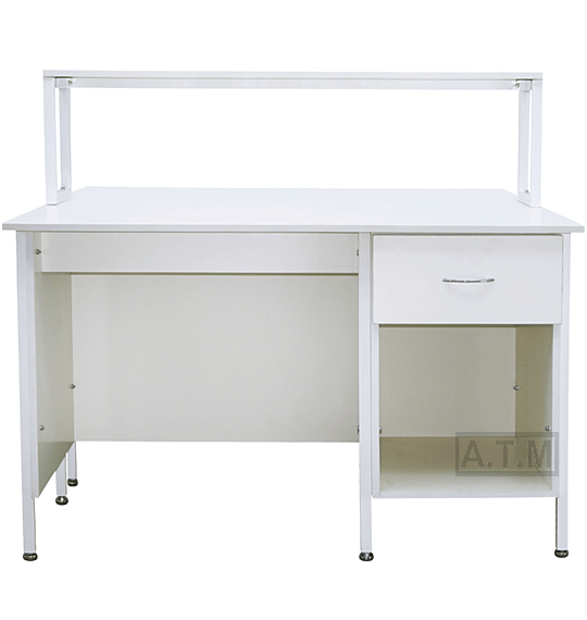 Стол оснащен тумбой с ящиком на роликовых направляющих и нишей;