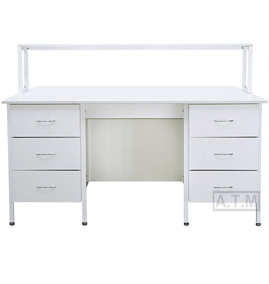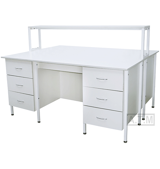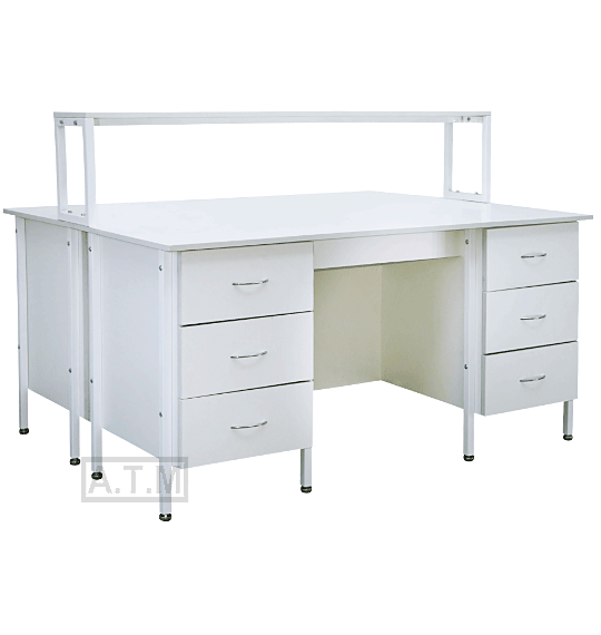 Стол оснащен 4 тумбами с 3 ящиками на роликовых направляющих;