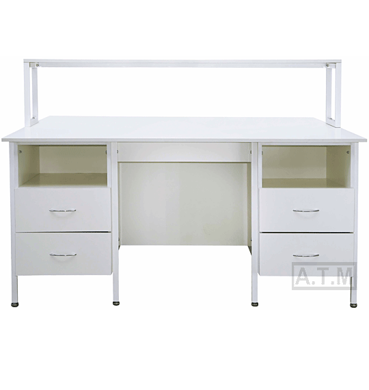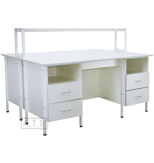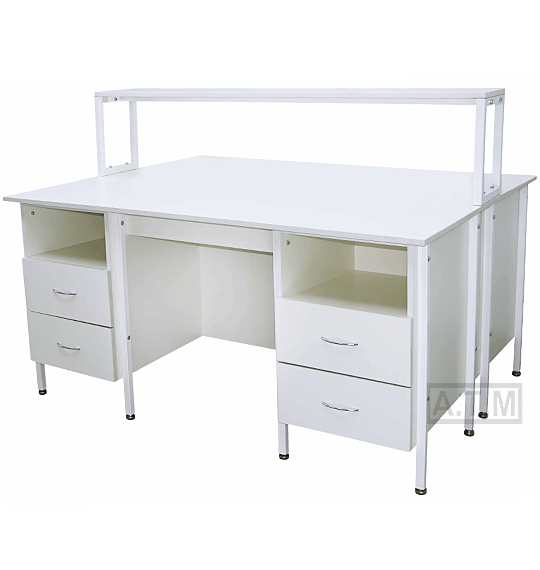 Стол оснащен 4 тумбами с 2 ящиками и нишей;