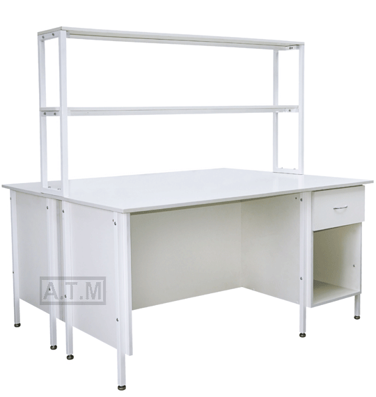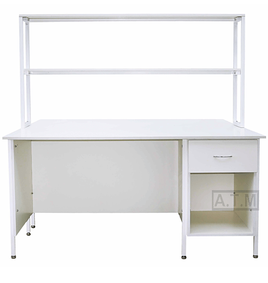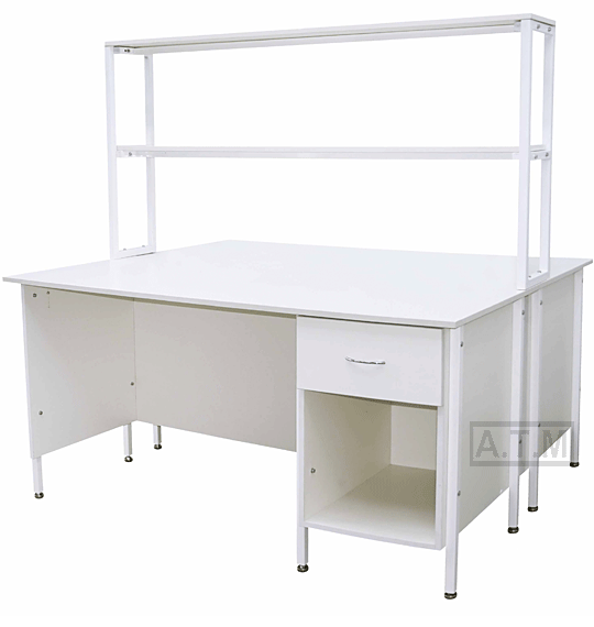Стол снабжен надстройкой с двумя полками;