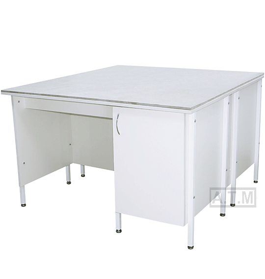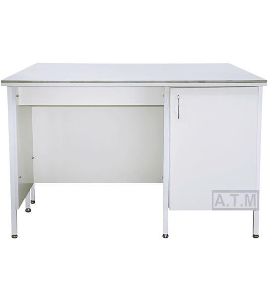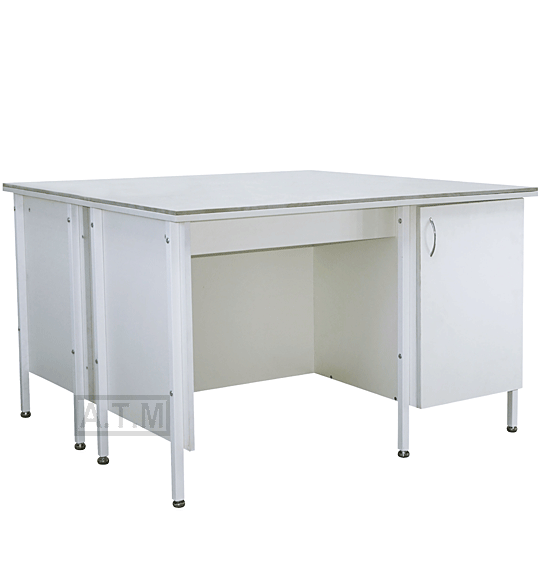 Стол оснащен тумбой с распашной дверцей и полкой;