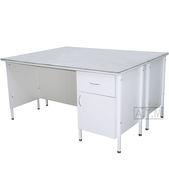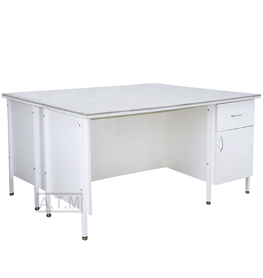 Стол оснащен тумбой с ящиком на роликовых направляющих и створкой;