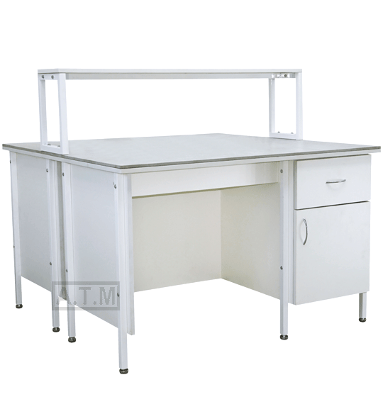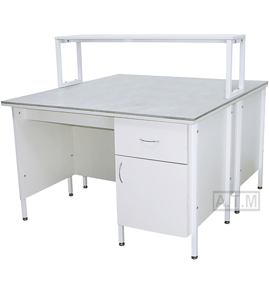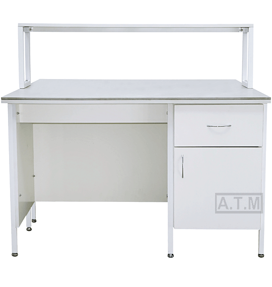 Стол оснащен тумбой с ящиком на роликовых направляющих и створкой;