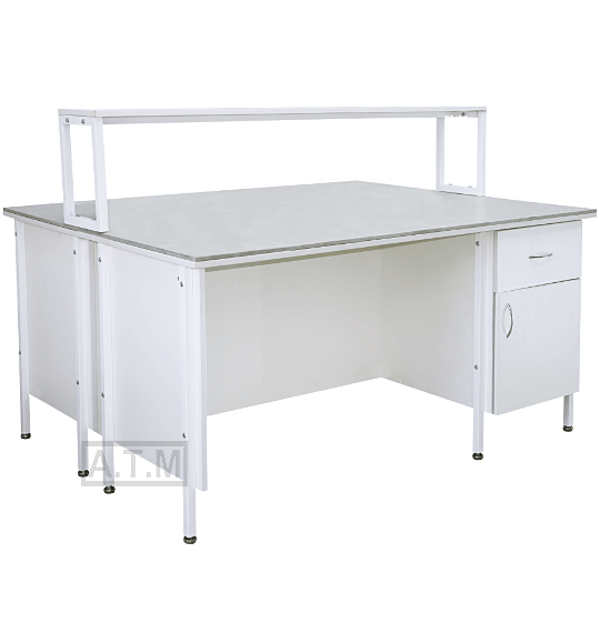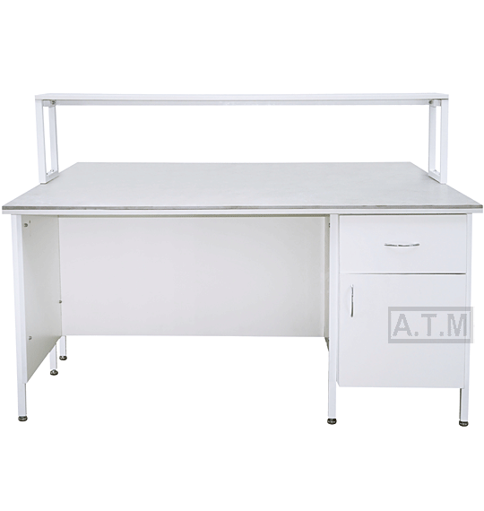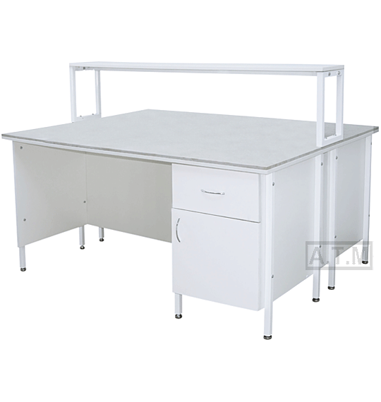 Стол оснащен тумбой с ящиком на роликовых направляющих и створкой;