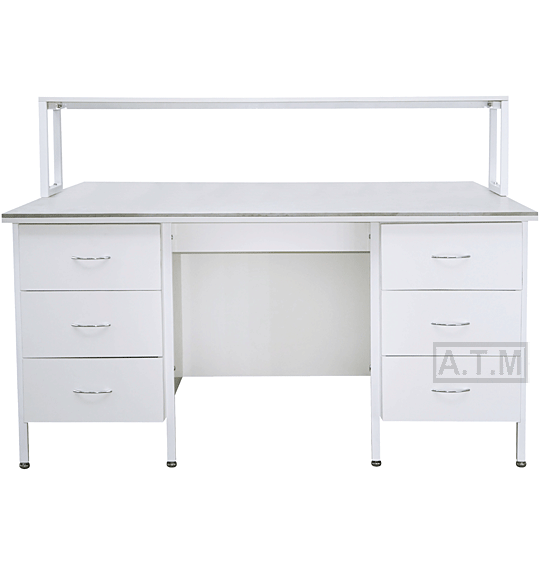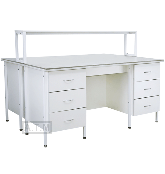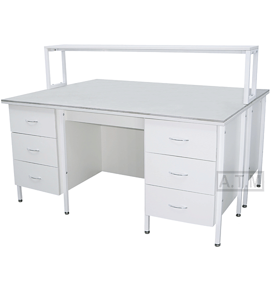 Стол оснащен 4 тумбами с 3 ящиками на роликовых направляющих;