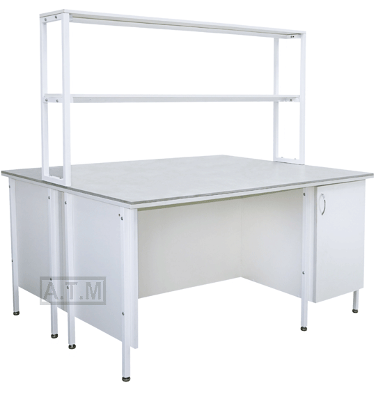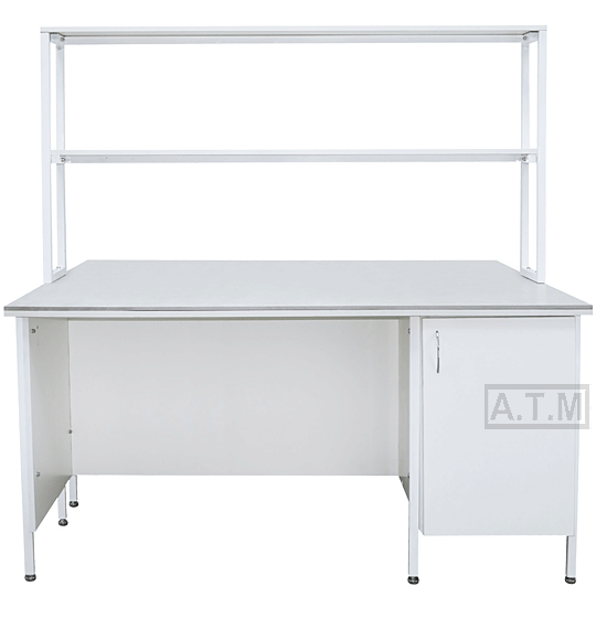 Стол снабжен надстройкой с двумя полками;