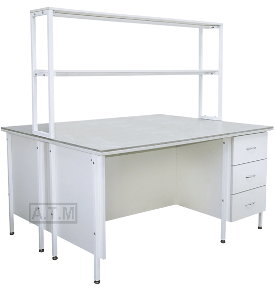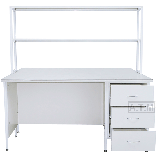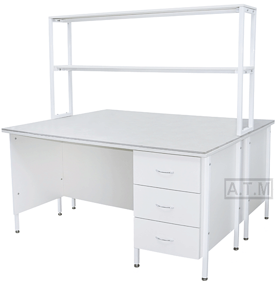 Стол оснащен тумбой 3 ящиками на роликовых направляющих;
