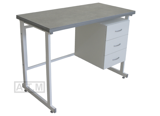 Стол оснащен тумбой с 3 ящиками на роликовых направляющих;