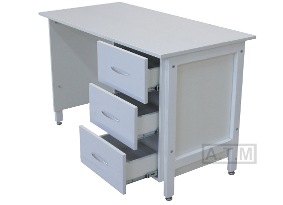Стол оснащен тумбой с 3 ящиками на роликовых направляющих