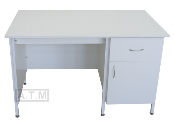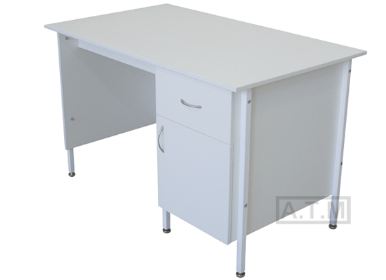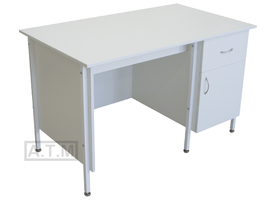 Стол оснащен тумбой с ящиком на роликовых направляющих и створкой;