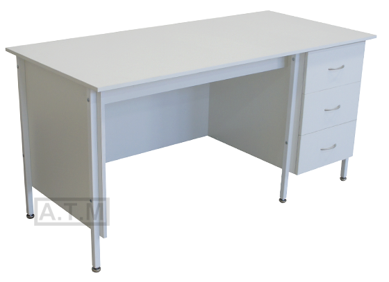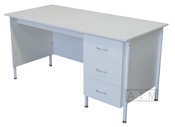 Стол оснащен тумбой 3 ящиками на роликовых направляющих;