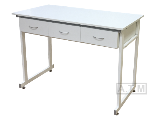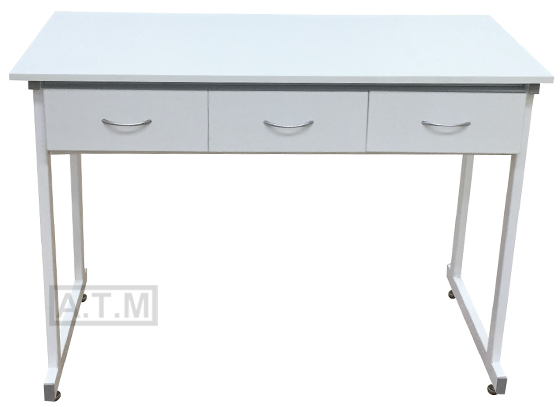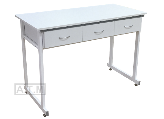 Стол оснащен тумбой с 3 ящиками на роликовых направляющих ;