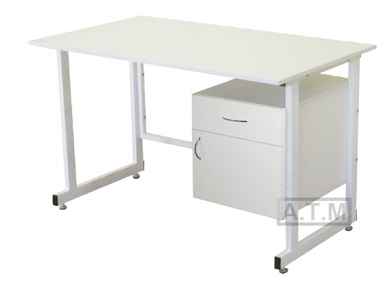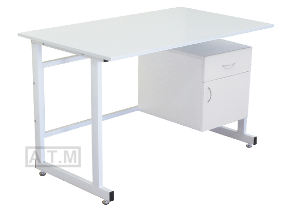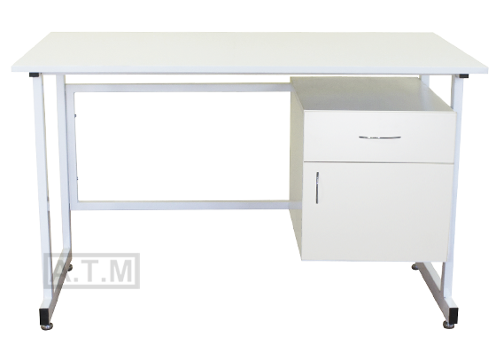 Стол оснащен тумбой с ящиком и распашной дверцей;