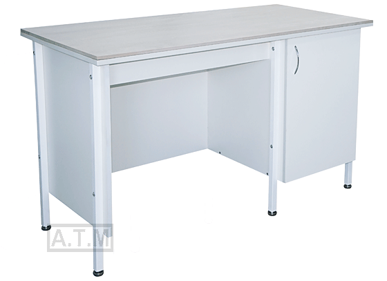 Стол оснащен тумбой с распашной дверцей и полкой;