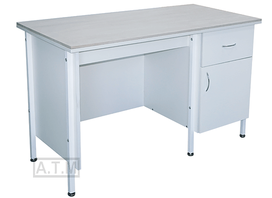 Стол оснащен тумбой с ящиком на роликовых направляющих и створкой;