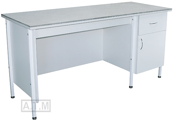Стол оснащен тумбой с ящиком на роликовых направляющих и створкой;