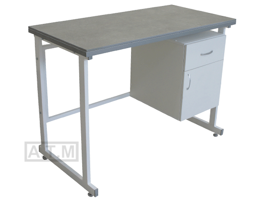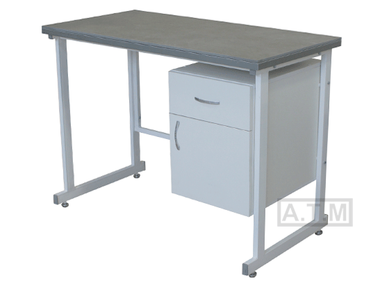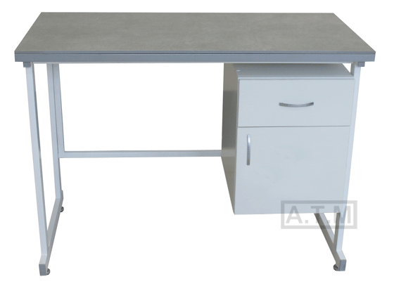 Стол оснащен тумбой с ящиком и распашной дверцей;