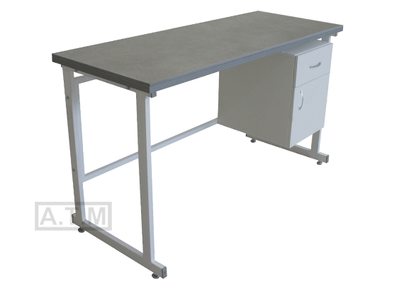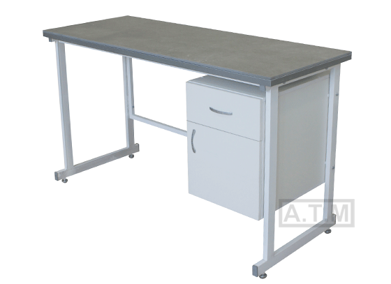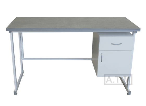 Стол оснащен тумбой с ящиком и распашной дверцей;