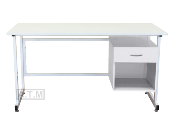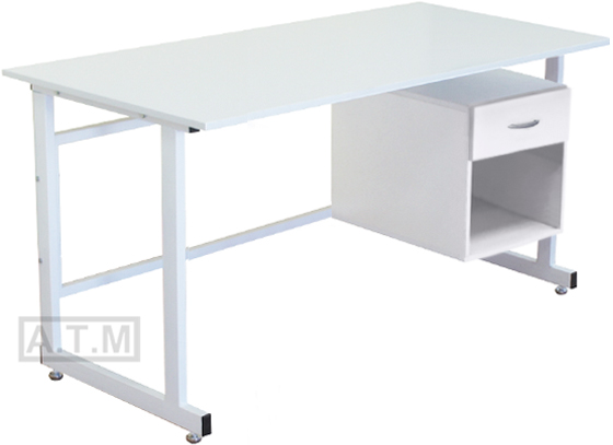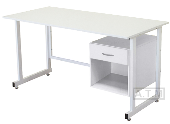 Стол оснащен тумбой с ящиком на роликовых направляющих и нишей;