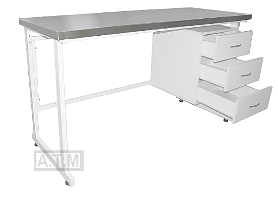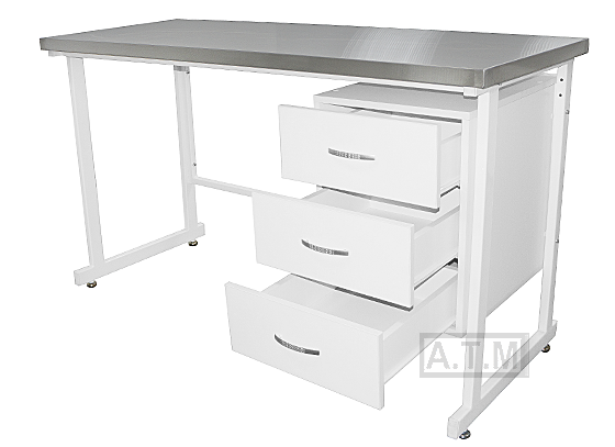 Стол оснащен тумбой с 3 ящиками на роликовых направляющих;