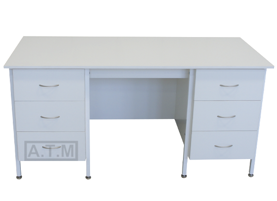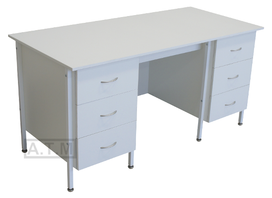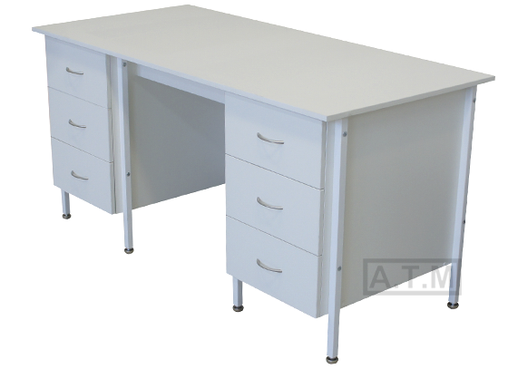 Стол оснащен 2 тумбами с 3 ящиками на роликовых направляющих;
