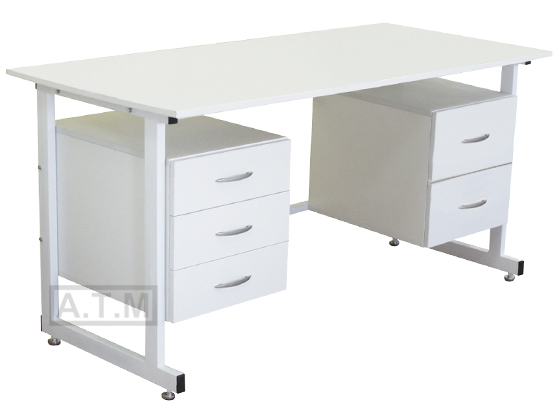 Вторая тумба имеет 2 ящика на роликовых направляющих;