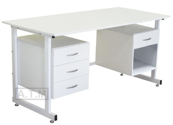 Первая тумба снабжена 3 ящиками на роликовых направляющих;