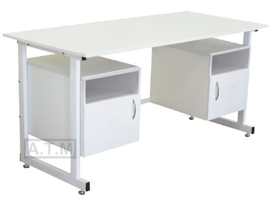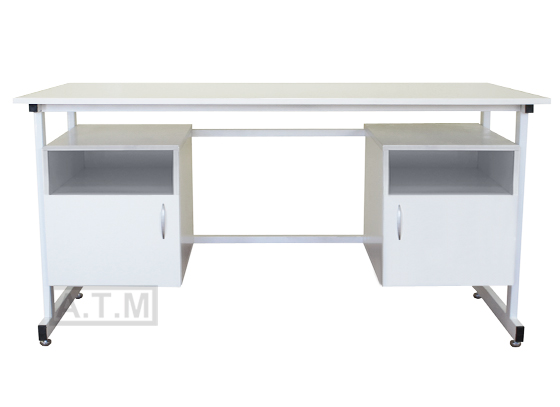 Стол оснащен двумя тумбами с нишей и распашной дверцей;