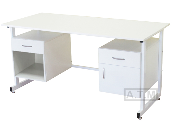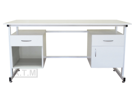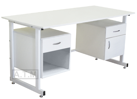 Вторая тумба снабжена ящиком на роликовых направляющих и распашной дверцей;