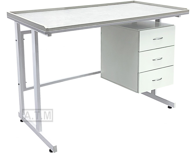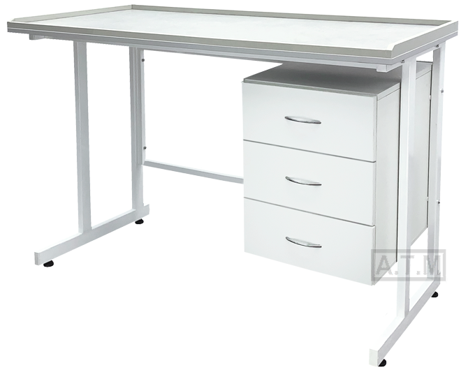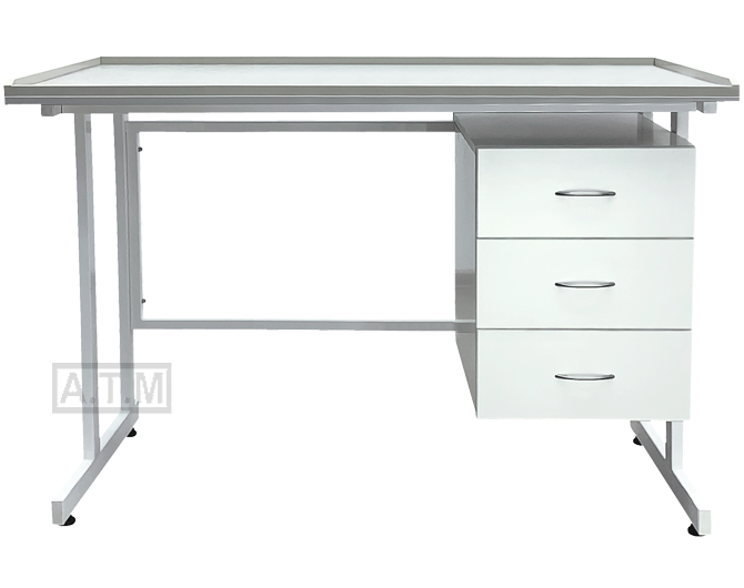 Стол оснащен тумбой с тремя выдвижными ящиками;
